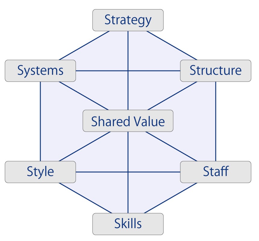 7Sとは、企業戦略における、幾つかの要素の相互関係をあらわしたもの。優れた企業では、各要素がお互いを補い、強め合いながら戦略の実行に向かっているとされる。世界有数の戦略コンサルティングファームであるマッキンゼー・アンド・カンパニーが提唱した。