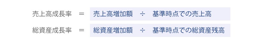 成長性分析とは、企業の売上高、総資産などの規模がどの程度変化しているかを分析することで、企業に係る一定期間の規模の成長度合いを測定するもの。売上高成長率、総資産成長率などがある。