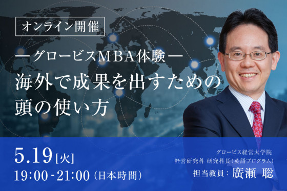 本セミナーでは、国内外の事業会社で執行役員や共同COOとして既存事業の変革・新規事業の立ち上げを経験し、現在は本学英語プログラムの研究科長を務める廣瀬が登壇し、「クリティカル・シンキング」をベースとした体験クラスを行います。また、駐在員として活躍しながらオンラインでグロービスMBAを学ばれた卒業生に、リアルな体験談を伺います。