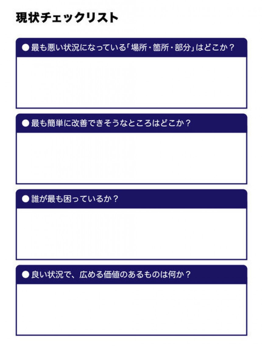 それでは、スモール・ウィンを導くために、現状をどう分析したらよいかについて、いくつかポイントを紹介します。下図に気づいた点を書いてみてください。