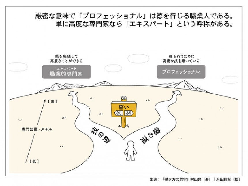 厳密な意味で「プロフェッショナル」は、胸中に誓いを抱いた徳を行じる職業人です。単に高度な知識・技術を持つ専門家なら「エキスパート」という呼称があります。