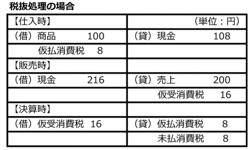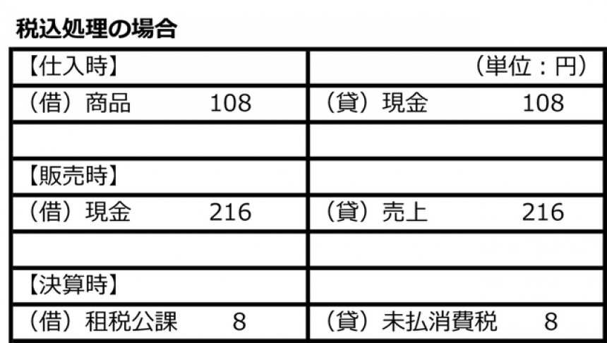 ※この他、税務上は交際費、資産計上等、税抜処理か税込処理かによって相違がありますが、ここでは割愛します。