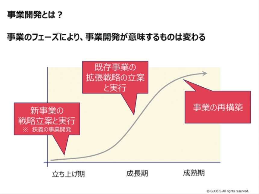 事業開発の定義としては、冒頭の図で言えば低いところから上がっていく途中ぐらいまでをイメージしています。そのうえで、本当に事業として展開していくとなれば、1つの事業体になる、あるいは既存の事業体に渡すというプロセスになります。それぞれ「承認するのは誰か」を決めたうえで進めていきます。