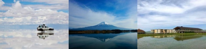 しかしこのホテルの「やるな!」という点は、建築物に止まらない、アナロジーを活用した顧客の深層心理への訴え方にあります。水を張って鏡張りとなった水田に映るホテルは、そこに建つ建築物をさらに幻想的なものに見せます。人々が鏡張りの絶景に魅了されることは、ボリビアのウユニ塩湖や日本の「逆さ富士」などの事例からも証明されています。つまり、ウユニ塩湖や逆さ富士にアナロジーを利かせて仕掛けとし、水田という鏡張りに映るホテルを絶景化しているのです。