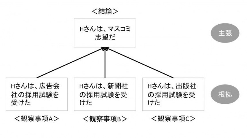 ⇒「Hさんは、マスコミ志望だ」(結論)