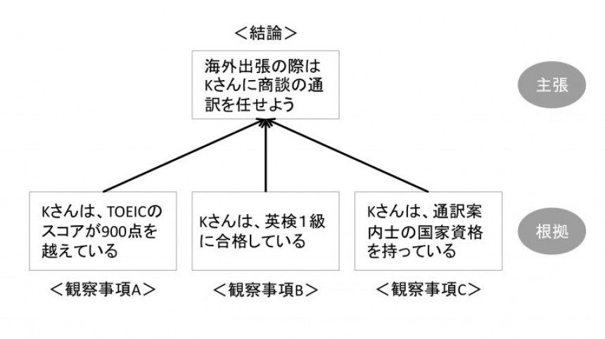 ⇒「海外出張の際は、Kさんに商談の通訳を任せよう」(結論)