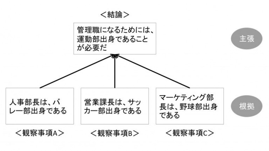 ⇒「管理職になるためには、運動部出身であることが必要だ」(結論)