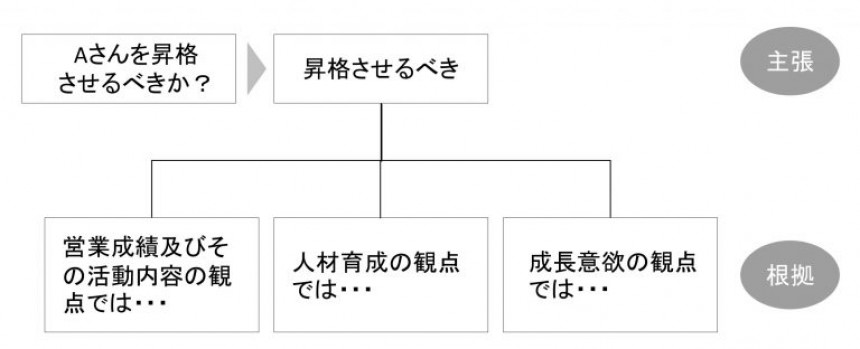 課長の主張と根拠は、チャート化してみると演繹法・帰納法の論理展開には沿っていると言えそうですね。では、続けて「主張と根拠の内容に客観的妥当性があるか?」について確認してみたいと思います。営業能力、人材育成能力、成長意欲の高さの3項目は、一般論に照らし合わせてみると営業リーダーに求められる最低限必要な能力だと言えると思いますので、観察事項が事実であれば、客観的妥当性はあると言えるでしょう。