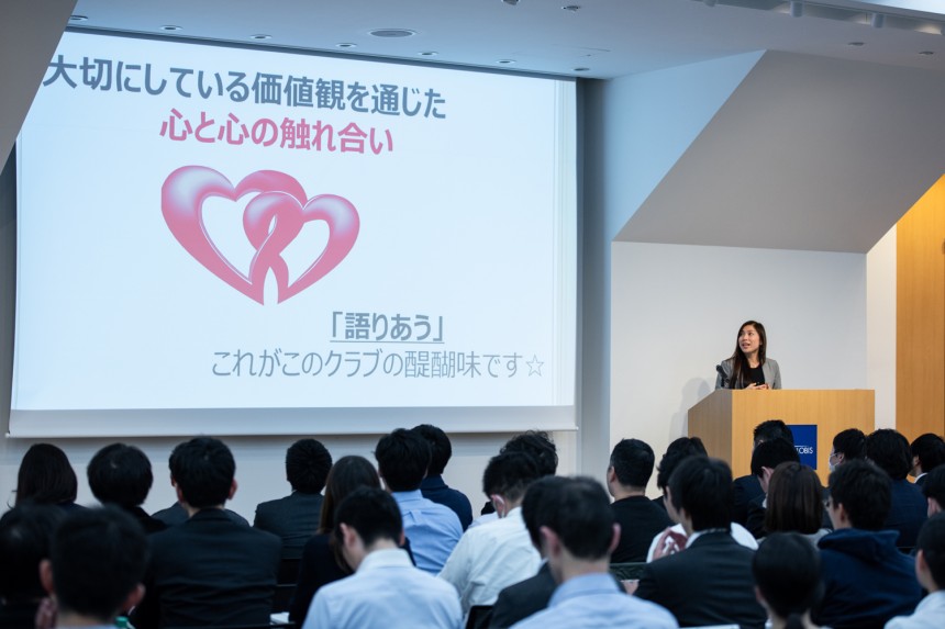 3ヶ月に一度の全体会では、価値観共有をベースにさまざまなイベントが開催されている。任意団体ORIZURUによるグリーフケア(家族や友人など身近な人と死別した人が、その悲しみから立ち直れるようそばで寄り添いながら支援すること)の勉強会、コーチングのプロや国境なき医師団のメンバーとのコラボレーション、最近ではワーク・ライフバランスコンサルタントの小室淑恵氏による働き方改革の講演も行われた。また、5〜6人の少人数で実施するプチ価値観共有会は、幹事だけでなくクラブメンバー自らが自由に企画できるイベントだという。