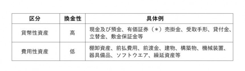 なお、費用性資産は直接的におカネで回収されないという意味で換金性は低いとされますが、製造、販売等の事業活動を通じて、最終的にはおカネで回収されるという意味では必ずしも換金性が低いとは言えないかもしれませんね。