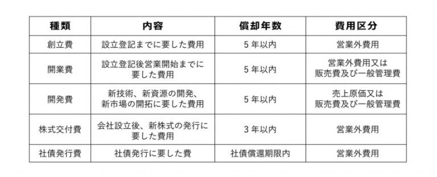 (*)他に、賃貸借の権利金、広告宣伝用資産、公共施設等の負担金等、税務上、繰延資産の対象となるものも存在します。