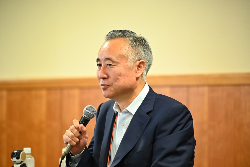 「皆さんは、ロボットの製造や開発分野では日本は勝てると考える一方で、AIでは海外勢に勝てないと感じているのではないか。その状況を逆手に取り、今こそテクノロジーの組み合わせで、新しい商品やサービスを作るのが日本の役割だと思っている」