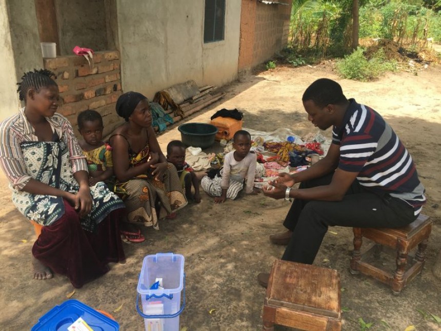 写真:タンザニアの現地スタッフが置き薬について説明している様子