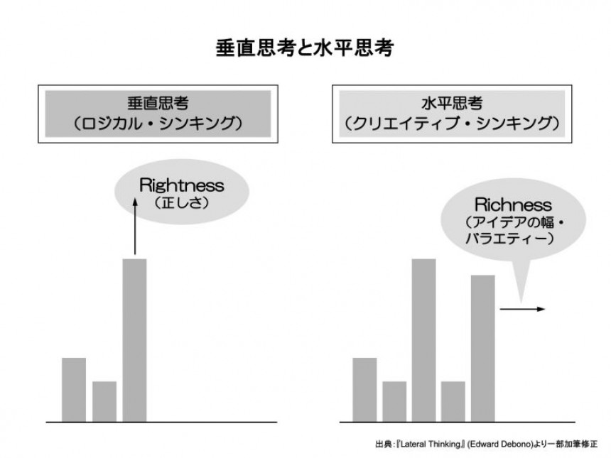 まずは私から。私は15年前に『クリエイティブ・シンキング』(ダイヤモンド社)という本を出しました。グロービスで学んでいる皆さまはクリティカル・シンキングが大好きですよね。ただ、それが行き過ぎると“クリハラ”をしてしまう。「クリティカル・シンキングハラスメント」といって(会場笑)、相手を詰め過ぎて傷つけてしまうかもしれない。ですから、僕はそれに対抗したというわけではないんですが、「ほかの考え方もあるよ」ということで『クリエイティブ・シンキング』を出しました。ロジカル・シンキングというのは、さまざまなファクトを経てメッセージを出すという、いわば収束的な思考。左脳が大好きな思考です。一方、クリエイティブ・シンキングは拡散的な思考です。1つのきっかけからアイディアを膨らませていくというもので、これは右脳が大好きな思考です。