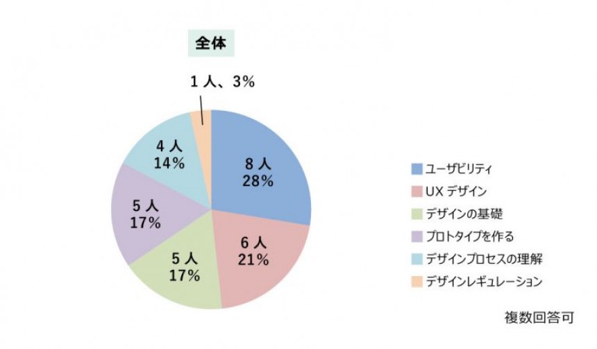 「ビジネスサイドからPDM」の方は、「デザインの基礎」について、デザイナーに任せているため、あまり重要視していないのではないかと考えられる。しかし、デザインプロセスについては、理解することで、より良いプロジェクトのマネジメントを考えられるのではないかと認識していることが伺える。
