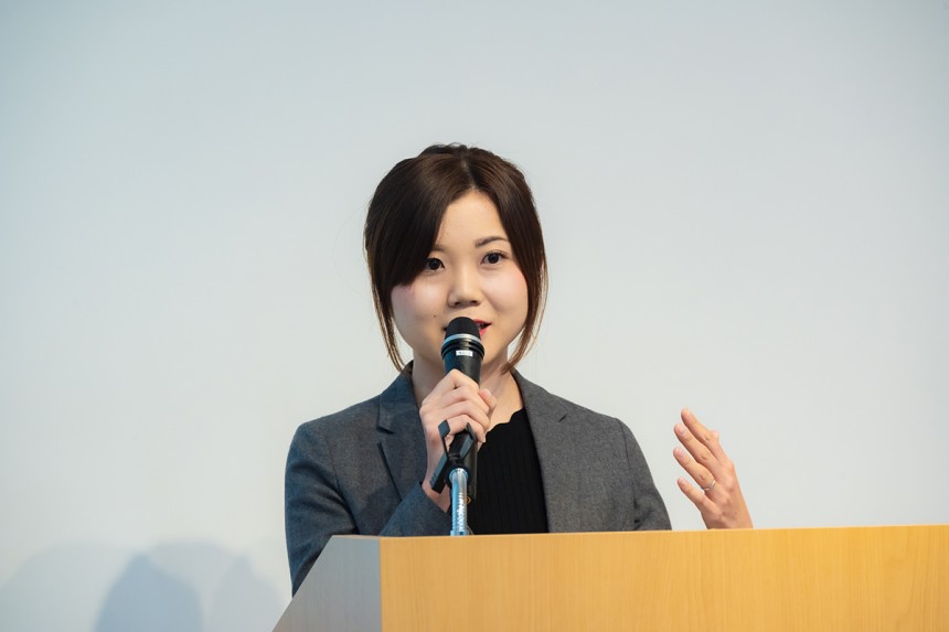 「会社の未来は自ら興す」をテーマに発表を行ったのは、味の素グループで大手アカウント営業を担当する豊泉俊一郎氏と、ダイレクトマーケティングを担当する塩谷美咲氏。