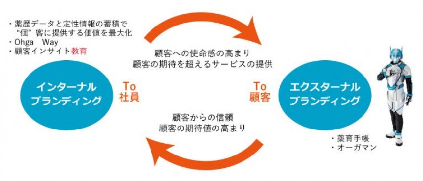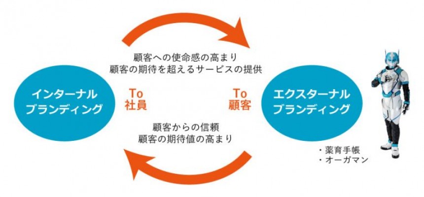 このようにエクスターナルブランディングを強化することでルーチンに流されがちな社員の心に火をつける効果はある一方、同時にインターナルブランディングも高め、顧客の期待を超えることが不可欠だ。この2つをいかに同期化していくかは、薬剤師だけでなく、社会の中で縁の下の力持ち的役割を担っている企業であれば共通に重要と言えよう。今回は、大賀薬局がいかにこの2つを同期化する取り組みを行っているか、インターナルブランディングにどのような施策をうってきているかみてみたい。