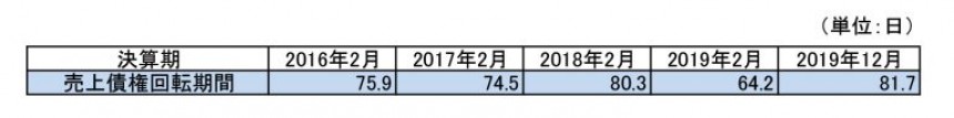 同社の有価証券報告書のデータから売上債権回転期間を算出すると以下の通りです(※)。