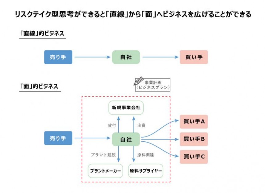 実は「リスクは危険である」と避けるのではなく、積極的に取り入れることができる(リスクテイクできる)ビジネスパーソンになると、よりクリエイティブに仕事ができるようになる。自らビジネスプランを考え、社内外の関係者に提案することも可能だろう。また、企業目線で見ても、リスクテイクによる事業投資案件は一般的に利益率が高く企業価値に貢献する。つまり、“リスクテイク型思考”はあなた個人にとっても企業にとっても良いのである。