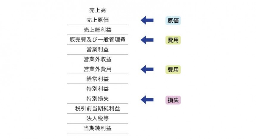 これに対して、損失は売上を得るために貢献しない費用です。発生した場合に、「損をした」と感じる費用という言い方が分かりやすいでしょう。損失には、固定資産の減損損失や災害による損失などがあります。P/Lでは「特別損失」をイメージしてください。
