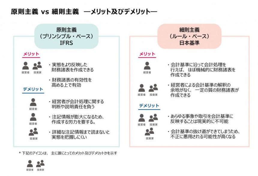 一方、原則主義においては、「自社の行った会計処理が原則に沿っているのか」に関する判断や説明責任は経営者が負うことになります。また、何か問題が発生した場合は常に経営者に責任が問われることになります。経営者は、会計基準の意味を的確に理解した上で、その基準が想定する範囲内において、取引の実態を最も適切に財務諸表に反映させる会計処理を判断し、適用することが求められます。よって、原則主義の下で作成された財務諸表は、経営の実態をより適切に反映されたものになり、意図的な虚偽表示等の会計不正が起こりにくくなるだろう、つまり財務諸表の有用性を高める上で有効だと考えられるのです。