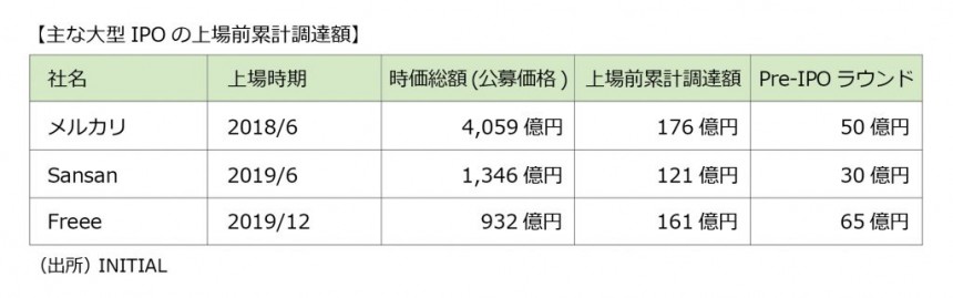 その先駆けとなったのは、日本初のユニコーンとして2018年に上場したメルカリ社。上場前に累計176億円調達し大型上場を果たしました。その後も有力企業が似たような資本政策をとる事例が続いています。