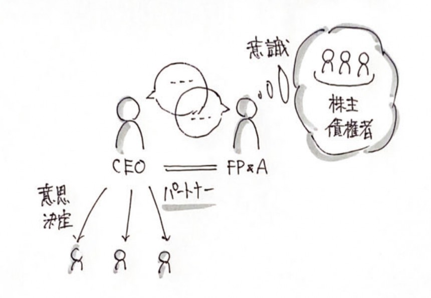 また、ファイナンスの専門家として、投資家・債権者といったファイナンス・ステークホルダーの期待値を正確に把握し、CEOにフィードバックをすることも重要な責務です。