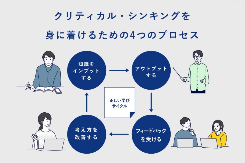 「インプットした知識をつかって自分で考えアウトプットし、フィードバックを受け、考え方を改善する」という営みを繰り返すことです。