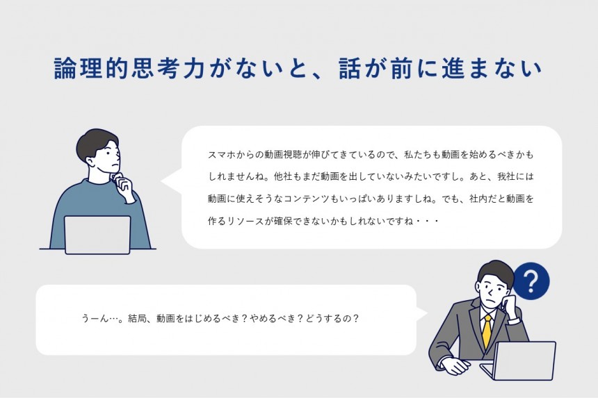 このような感想を抱いた人が多いのではないでしょうか。論理的思考が身に付いていない人は、頭の中が整理されないまま話してしまうことが多く、周囲の人たちに多くの負荷をかけてしまっているのです。