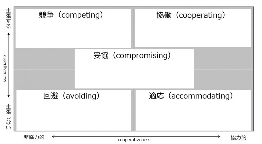 - 競争…相手に歩み寄ろうとせず、自己主張を通すスタンス