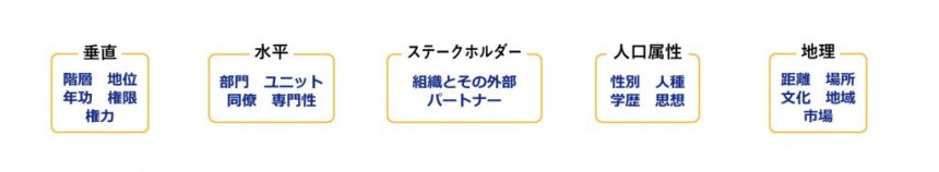 第1回でもご紹介したように、バウンダリースパナーが直面する境界は、『組織の壁を越える 「バウンダリー・スパニング」6つの実践』(クリス・アーンスト 他、英治出版)で挙げられている、5つの境界で整理することができます。