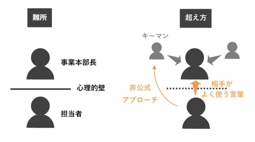 このように、上長とメンバーでは持っている情報の量や質、責任が異なるため垂直の境界課題が生じます。Xさんは上司とその側近であるキーマンに事前に根回しを行い、承認者への事前の情報インプットにより心理的ハードルを下げることで、課題を克服していました。理だけではなく情に働きかけること、そのために公式と非公式を使い分けることが、境界課題を乗り越える鍵になると言えます。
