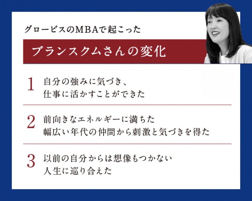 卒業生3名の話からも、グロービス経営大学院で学んだことを機に多くの方がキャリアを変え、人生にポジティブな結果をもたらしていることがわかる。