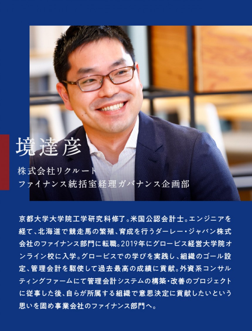 本記事では、国内最大の学生数を誇るビジネススクールであるグロービス経営大学院の卒業生、本田慎二郎氏(株式会社ユニクロ カスタマーセンター)、ブランスクム文葉氏(ゼロワンブースター コミュニティ開発部ディレクター)、境達彦氏(リクルート ファイナンス統括室経理ガバナンス企画部)に、同大学院教員の岩越祥晃氏がインタビュアーとして、自らの力で未来を切り開くための原動力について聞いた。