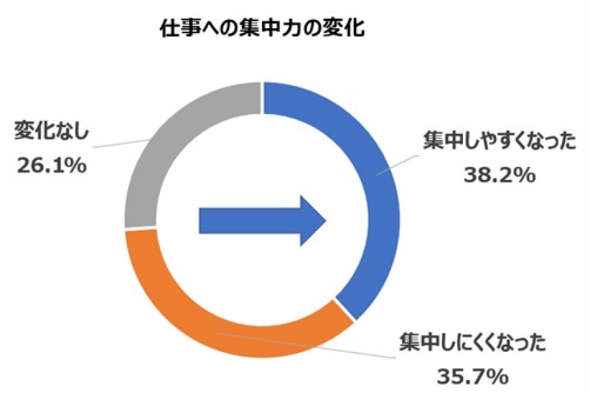 「配偶者からプライベートの話や用事で話しかけられる。子供が保育園や学校から帰ってきて話しかけられる。家族との時間が増えたのは嬉しいが、仕事の集中を阻害される点では困っている」 - 自宅というプライベート空間で仕事をすることに違和感がある