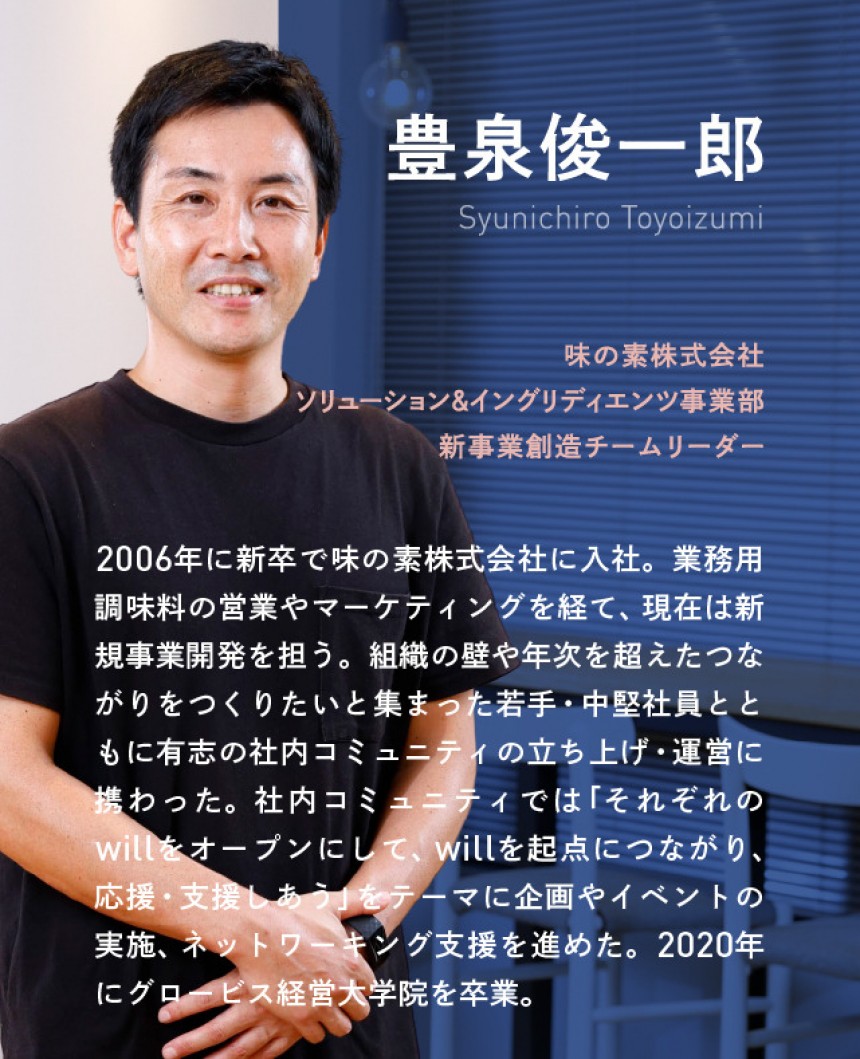 豊泉:転職はまったく考えたことがありません。日本の企業で社会に貢献したいという強い思いがあり、味の素株式会社に入社しました。「食」は生活の基本であり、日本には素晴らしい食文化が数多くあります。その「食」に関わる自分の仕事を通じて、世の中に貢献できることはたくさんあると信じています。