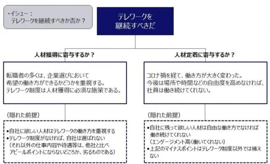 テレワーク制度を継続すべきか否か。このイシューにどう答えを出すべきか。何か見落としはないのだろうか。