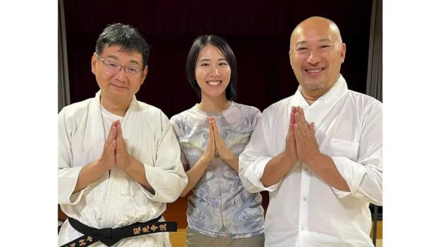 そのあとは、合気道の実践を行った。合気道の実演では、中尾先生の講義と食事で広がった宇宙のイメージをそのまま使わせていただき、技の実践の中で、重力と友達になり、円運動を行い、合気道でも宇宙と一体となれることを実演する。