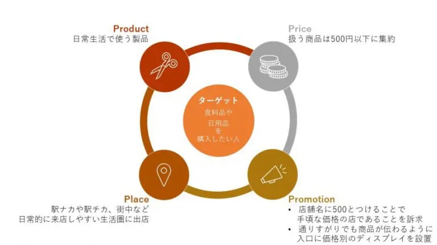 加えて、扱っている商品が全て既存商品というのもポイントです。一般的に新しいターゲットを狙う際には、新商品開発を行うケースなどが多いものですが、無印良品500は既存のラインナップから一部の商品を切り出して並べているだけで新たな顧客が獲得できます。この点も経営資源を有効活用する優れた製品戦略だといえるでしょう。