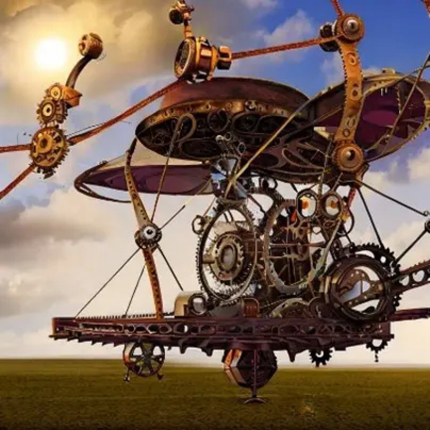 入力となるテキスト(prompt)には例えば、以下を使ってみよう。SF調の空飛ぶ機械の画像が生成されるはずだ。
