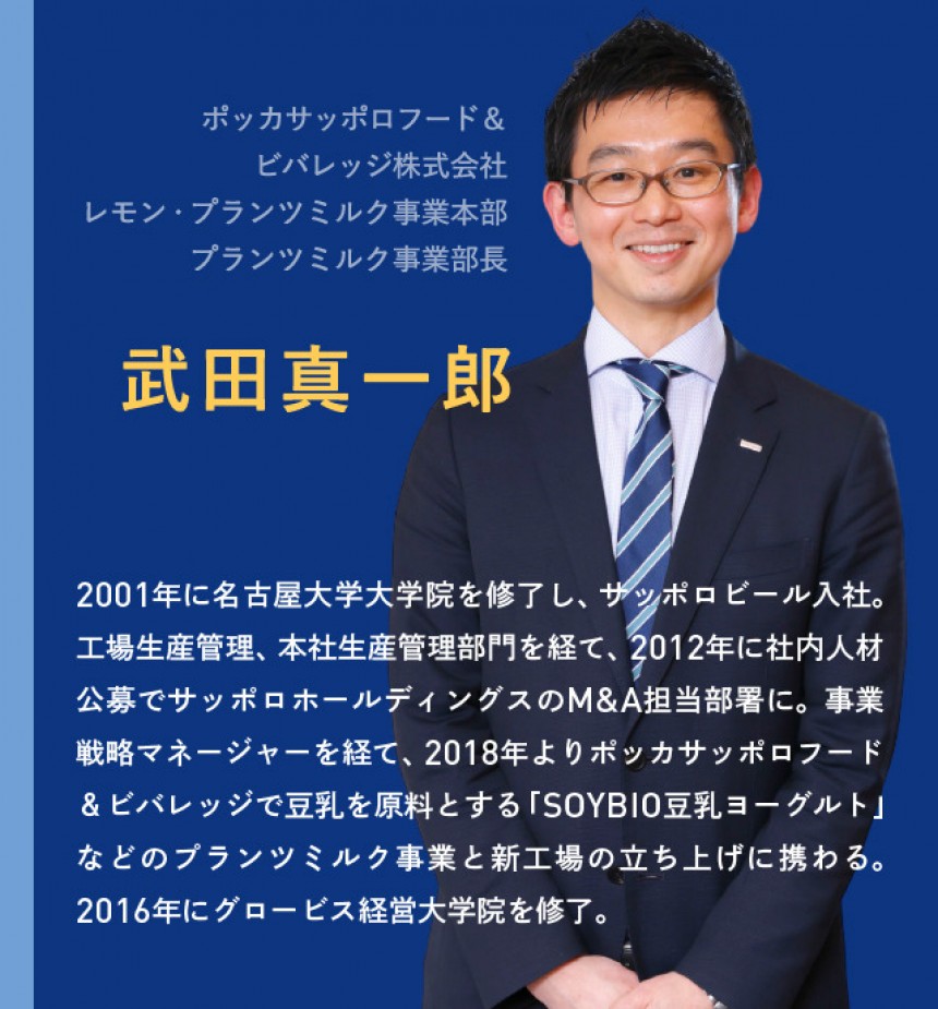 それを機に他社から譲り受けた事業を基盤とするプランツミルク事業の立ち上げに参画し、豆乳を原料とするヨーグルトの戦略立案から実行までを担っています。