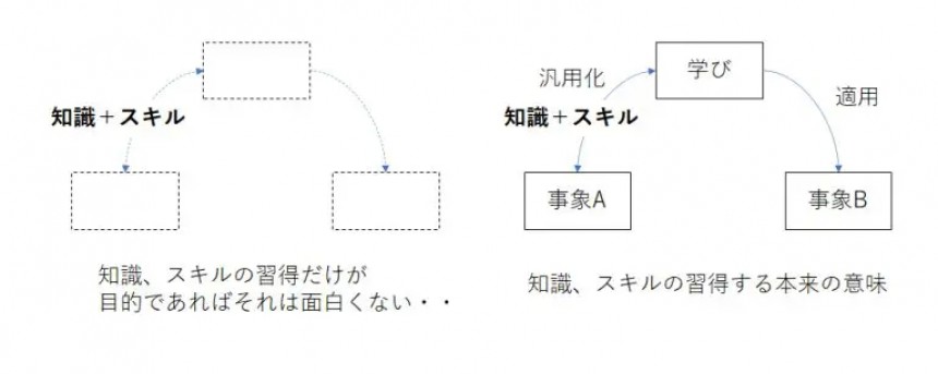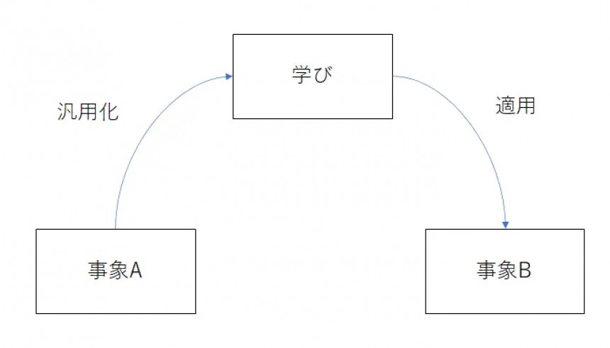 では、学ぶとはそもそもどういうことなのでしょう。私は、個別の事象を他の事象に適用できるように汎用化させることが学ぶことだと考えています。