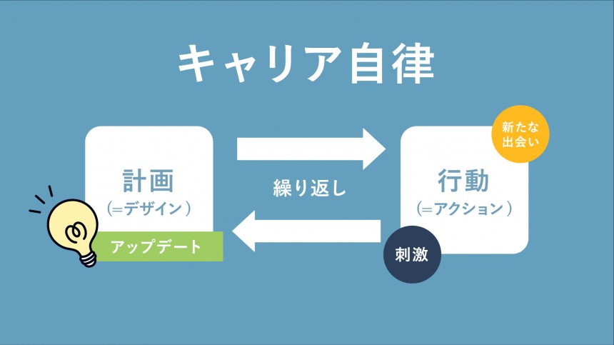 行動するための具体的な計画を立て、行動する中で得た新たな出会いや刺激でさらに計画をアップデートしていく。この繰り返しの活動を、主体的にスピード感をもって動かしていくことで、自律的なキャリアを歩むことができるのです。