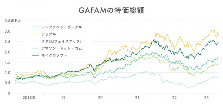 米国のテック銘柄の株価が復調しています。特にGAFAMと呼ばれる5大ビッグテック企業の戻りが力強いです。