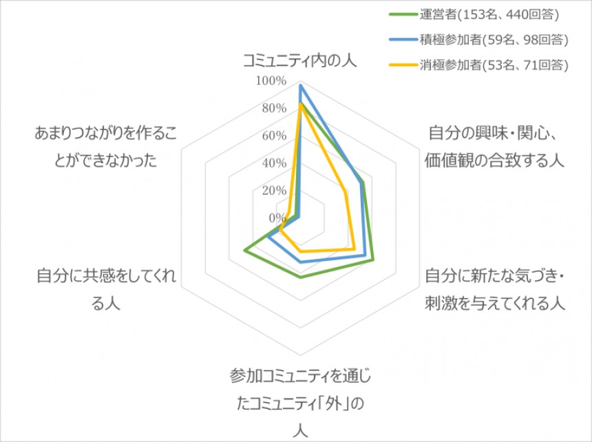 これらのコメントからも、人的ネットワークを中心とするつながりの「拡張」は、コミュニティへの関わりを意欲的にさせる理由にもなることも分かりました。