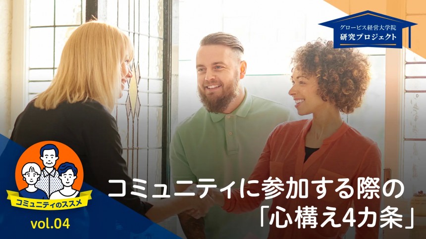 ※本連載はグロービス経営大学院に在籍したメンバー(大島さやか、角田由希子、中村知純、清末太一)が、田久保善彦講師の指導の下で進めた研究プロジェクト「コミュニティの創設・維持・発展」について、その研究結果をまとめたものです。詳細を7回に分けて連載し、皆さんが既に体感していることを言葉にすることで、より良いコミュニティライフを送るきっかけになればと考えています。