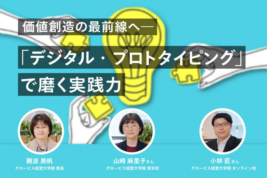 本記事では、グロービス経営大学院の教員と実際に「デジタル・プロトタイピング」を受講された学生の鼎談インタビューを通して、この授業を受講したきっかけや学びが実務にどのように活かされるのかを詳しくご紹介します。プロトタイピングを通じて新たな価値を生み出すヒントを、ぜひご覧ください。