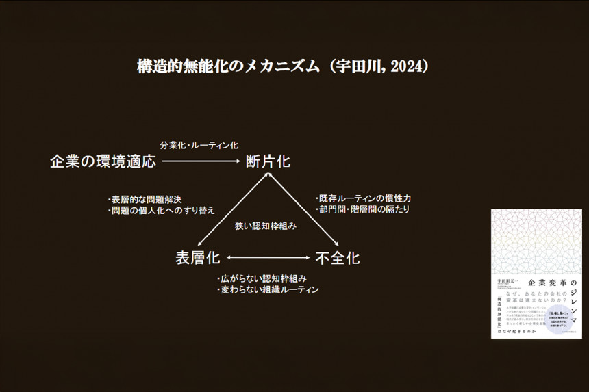 野本:宇田川先生の本を読んだ方は皆、「当社で起きていることが書かれています」とおっしゃいます。ぜひ、そこで自社がどんな構造になっているかをしっかり表していただき、無能化している構造に突っ込んでいって欲しいと思いますね。そのとき変革が成功しなくても先々で役立つ日は必ず来ると考えています。