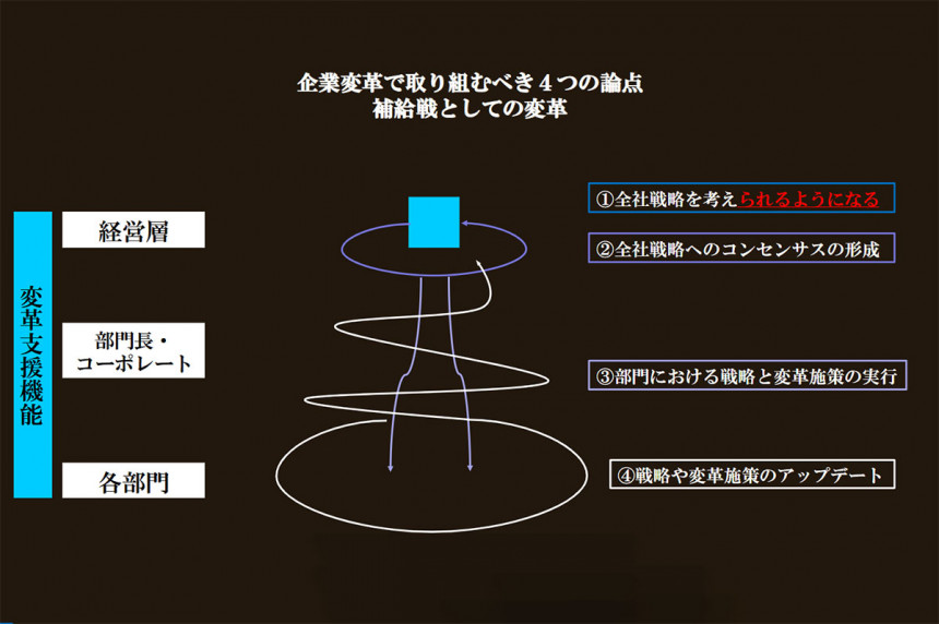 そのようにして各々のメンバーまたは階層を、変革者として機能させるのは可能だと考えています。ただし、それを促進するためには変革支援の機能をコーポレート側に構築する必要もあると考えています。