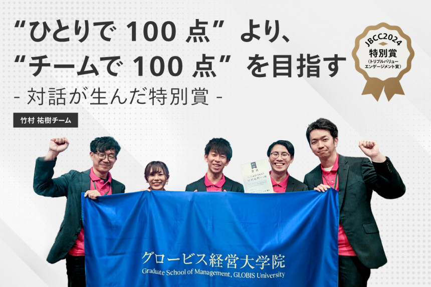 彼ら彼女らの成功の背景には、グロービスで培われた思考力、チームワーク、そして学びを実践につなげる力がありました。今回は特別賞(トリプルバリューエンゲージメント賞)を受賞した竹村さんチームのメンバーに、JBCCでの経験、グロービスでの学び、そして今後の挑戦について話を伺いました。